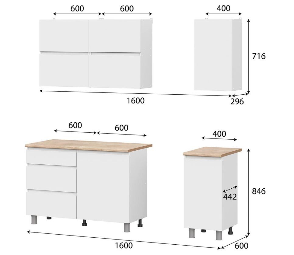 Кухонный гарнитур ТОКИО 1,6м (Серия 3) Белый текстурный/Дуб Сонома